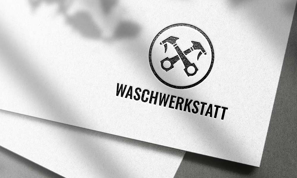 Bei der Waschwerkstatt steckt die Botschaft schon im Namen. Für das Logo haben wir drei Elemente kombiniert: Sprühflaschen für die Reinigung, Kolben und Pleuel für die Auto-Community und einen Kreis als Symbol für die Seifenblase. So entsteht ein Design, das zeigt, dass es hier nicht nur um Autowäsche, sondern um detailverliebte Pflege geht.