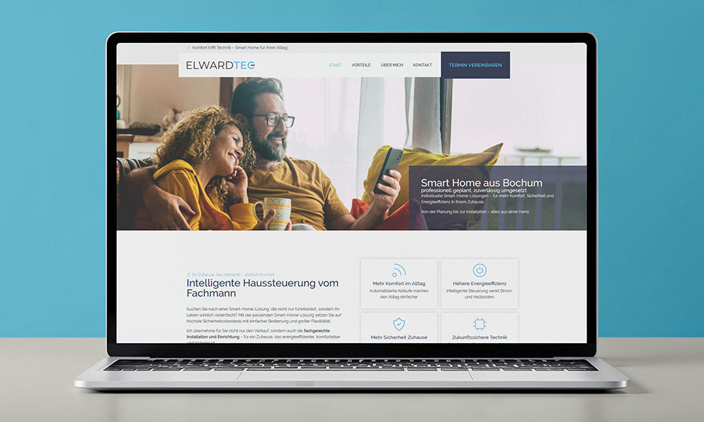 Für die FIrma Elwardtec haben wir einen modernen Onepager gestaltet und technisch umgesetzt, der das Thema Smart Home klar strukturiert und verständlich präsentiert. Das Design setzt auf Übersichtlichkeit, präzise Inhalte und eine klare Nutzerführung, sodass Interessenten schnell erkennen, welchen Mehrwert intelligente Haussteuerung bietet. Der Onepager transportiert Professionalität, Vertrauen und die technische Expertise des Unternehmens und schafft einen überzeugenden digitalen Auftritt für einen wachsenden Markt.